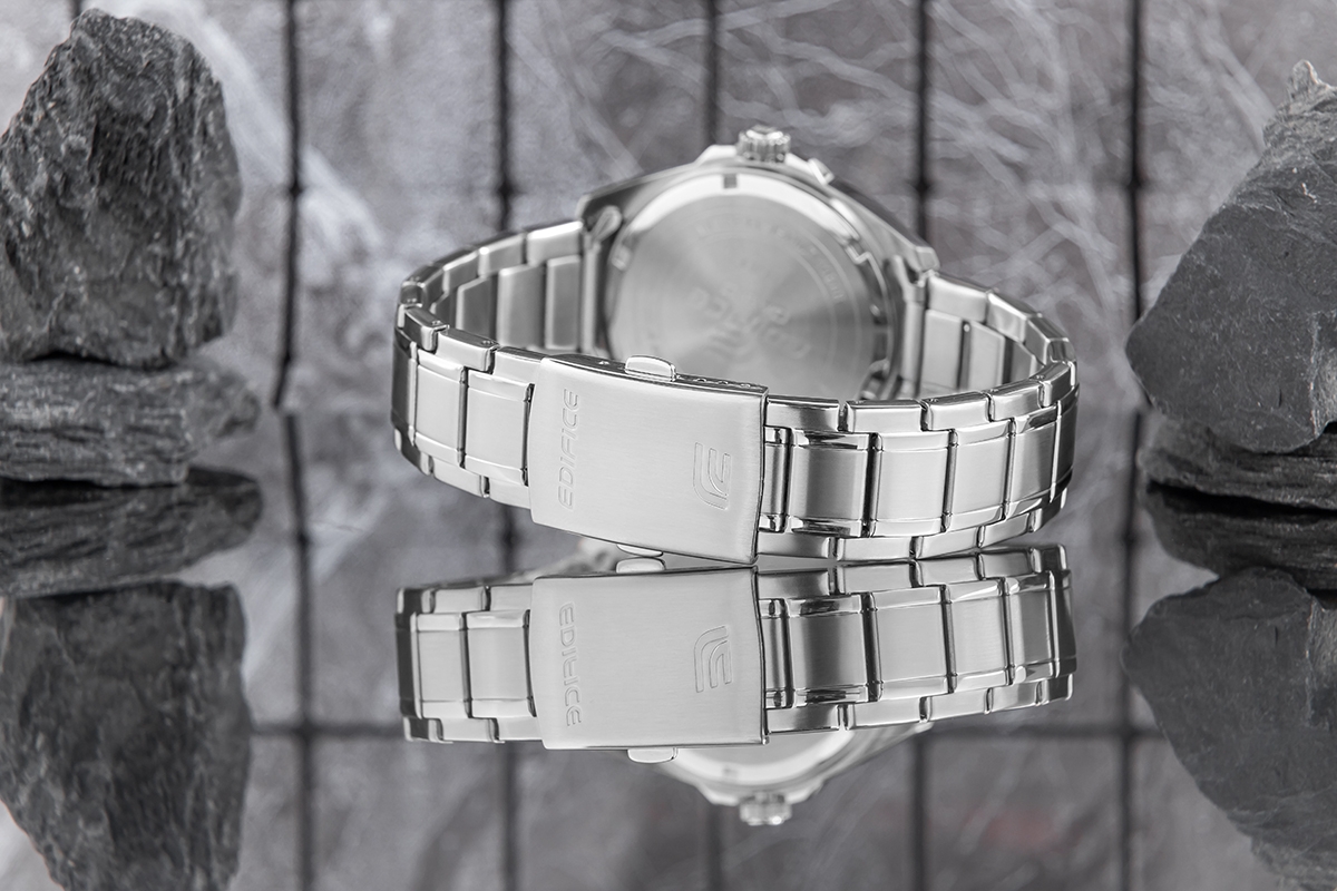 Model CASIO EDIFICE EFV-150D-1AVUEF został wyposażony w datownik dni miesiąca oraz funkcję Neobrite, która zapewnia widoczność w ciemności.