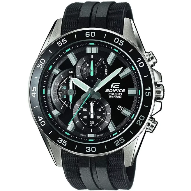 Casio Edifice EFV-550P-1AVUEF to większy chronograf o mocnym, sportowym charakterze. Grubsza tarcza, stalowa koperta i żywiczny pasek nadają tej serii bardziej dynamiczny, codzienno-sportowy wygląd niż w spokojniejszych klasykach Edifice na bransolecie.