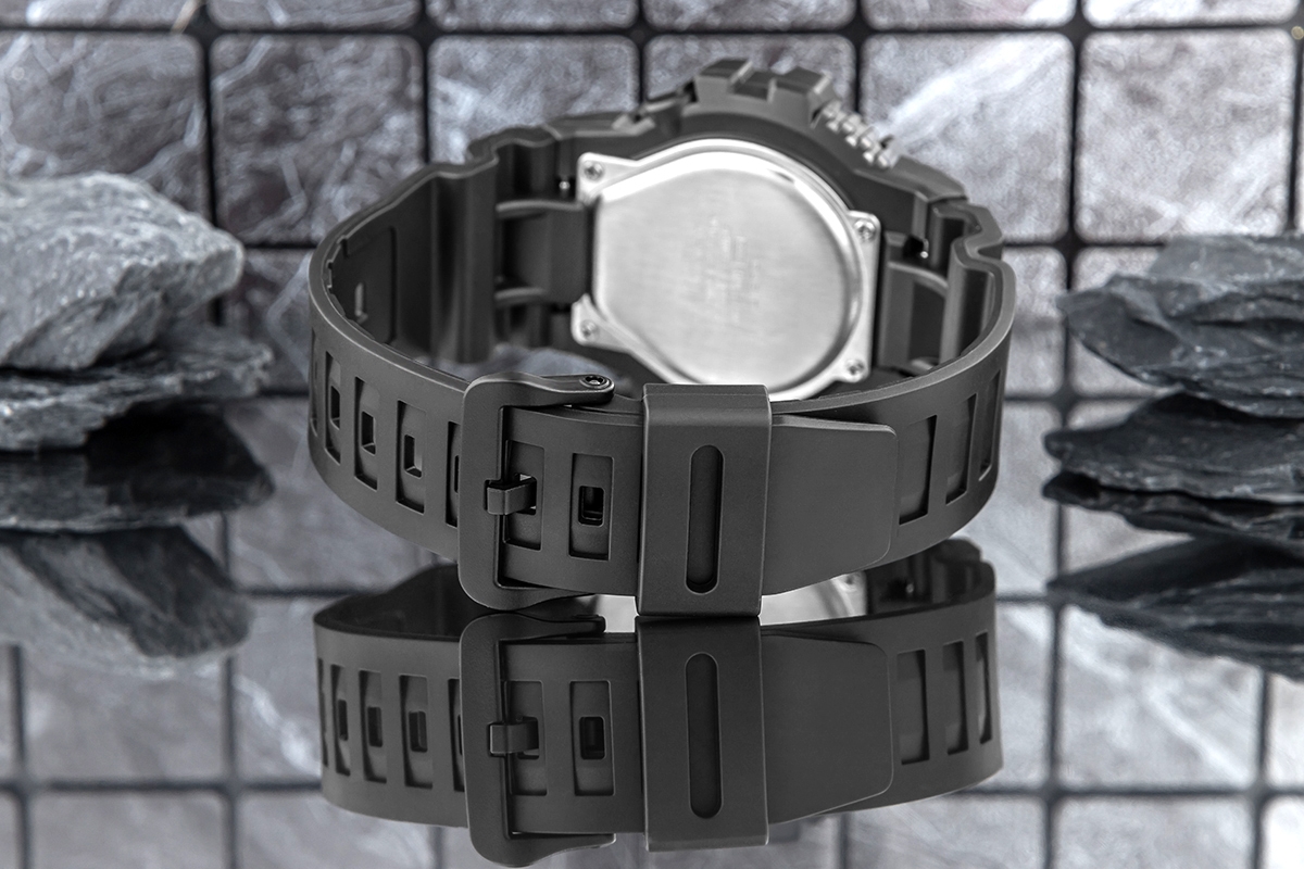 Bardzo lekki, zapewniając komfort w codziennym użytkowaniu, zwłaszcza w przypadku aktywności fizycznej. Materiał żywiczny jest odporny na uszkodzenia mechaniczne, takie jak pęknięcia czy złamania, co czyni go idealnym wyborem do zegarków przeznaczonych do intensywnego użytkowania. Resin jest odporny na wilgoć, działanie wody, a także na zmiany temperatury, co sprawia, że paski te doskonale sprawdzają się w trudnych warunkach. Paski resinowe są łatwe do czyszczenia – wystarczy przetrzeć je wilgotną ściereczką, aby usunąć zabrudzenia.