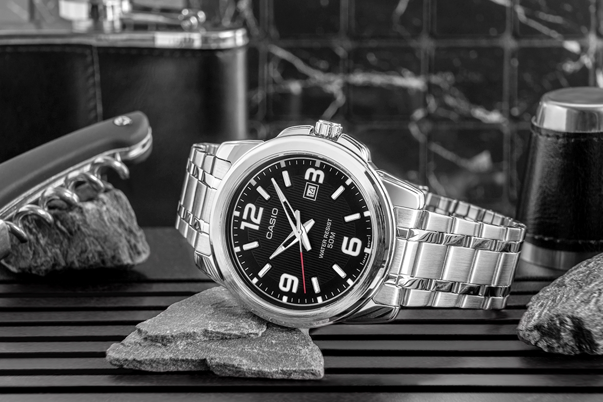 🕶️ Casio MTP-1314D-1AVDF to solidny męski zegarek na stalowej bransolecie, z czytelną czarną tarczą, fluorescencyjnymi wskazówkami oraz datownikiem. Stalowa koperta i szkiełko mineralne zapewniają trwałość, a wodoszczelność 5 BAR sprawia, że zegarek jest gotowy na codzienne wyzwania.