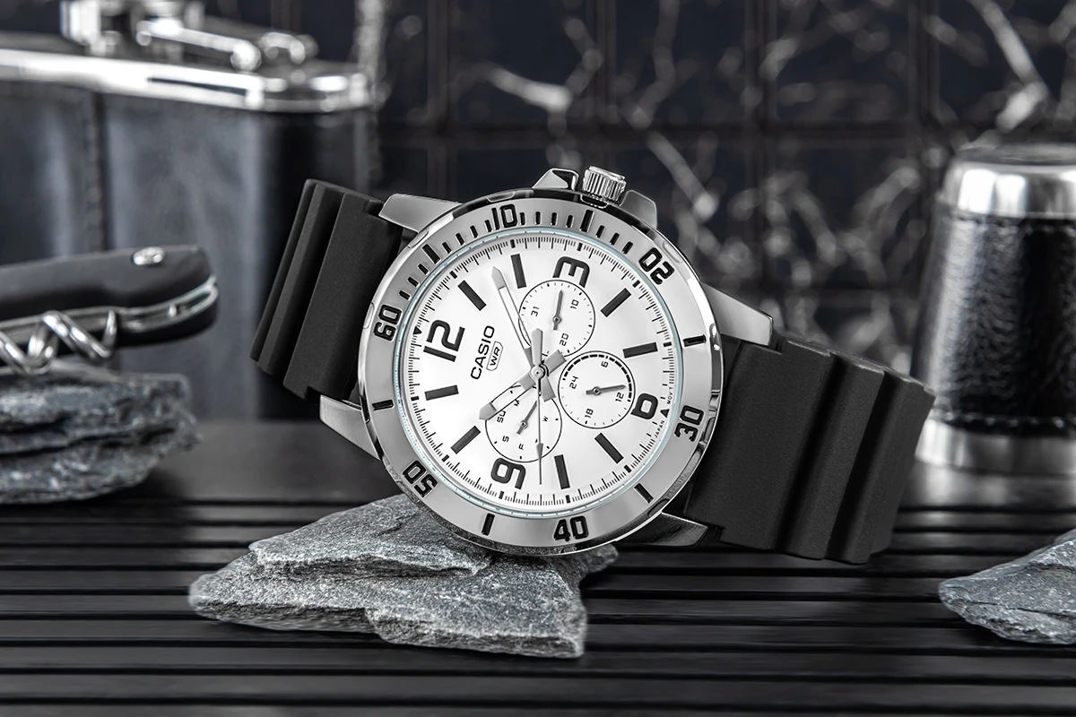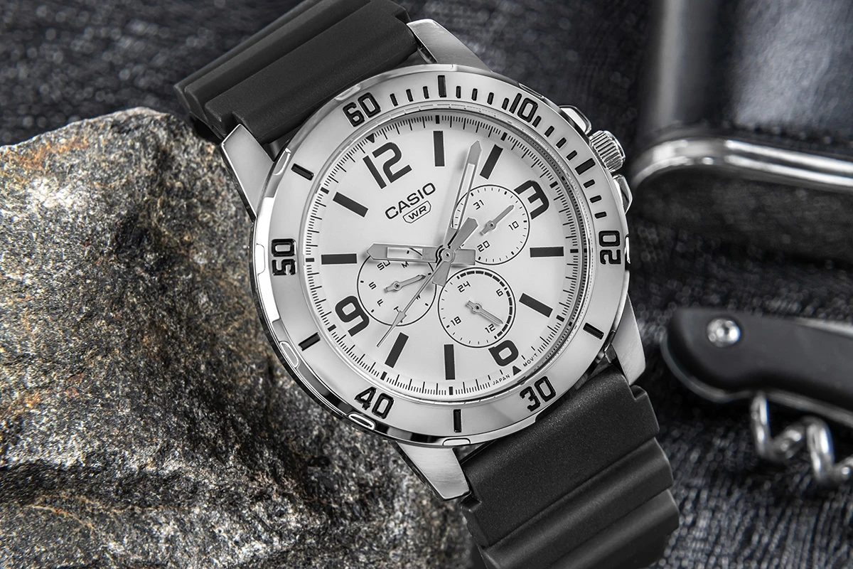 Casio MTP-VD300-7BUDF to klasyczny męski zegarek, który łączy w sobie elegancję i funkcjonalność w najlepszym wydaniu. Wyposażony w czytelną, białą tarczę z trzema subtelnie rozmieszczonymi subtarczami – datownikiem, wskazaniem dnia tygodnia i 24-godzinnym czasem – gwarantuje pełną kontrolę nad codziennym rytmem dnia. Stalowa koperta oraz solidna bransoleta zapewniają trwałość i ponadczasowy wygląd, który pasuje zarówno do garnituru, jak i casualowych stylizacji. Mineralne szkiełko chroni zegarek przed zarysowaniami, a precyzyjny mechanizm kwarcowy dba o niezawodność w każdej sytuacji. To propozycja dla mężczyzny, który ceni prostotę, styl i praktyczne rozwiązania w jednym akcesorium.