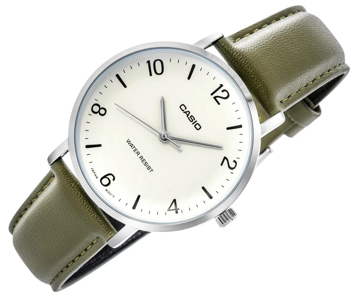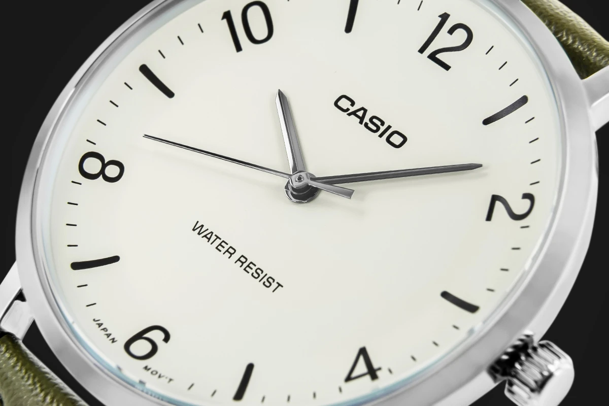 CASIO MTP-VT03 to kolekcja dla tych, którzy wiedzą, że prawdziwy styl nie potrzebuje fajerwerków. Liczy się przejrzystość, spokój i forma, która daje przestrzeń – zarówno na tarczy, jak i w codziennym życiu. Minimalistyczny design robi tu całą robotę. Wyraźne cyfry, smukłe indeksy, cienkie wskazówki – wszystko na swoim miejscu. Nie musisz się zastanawiać, co widzisz – po prostu rzucasz okiem i wiesz. To zegarek który pracuje cicho, ale robi wrażenie. Wodoszczelność na poziomie podstawowym pozwala na użytkowanie bez obaw o przypadkowe zachlapanie, a cienka koperta 8,5 mm gwarantuje komfort noszenia nawet przez cały dzień. Casio MTP-VT03 to model, króry jest lekki, wygodny i gotowy na każdą okazję. I co najważniejsze – pasuje do wszystkiego, bo nie próbuje z niczym rywalizować.