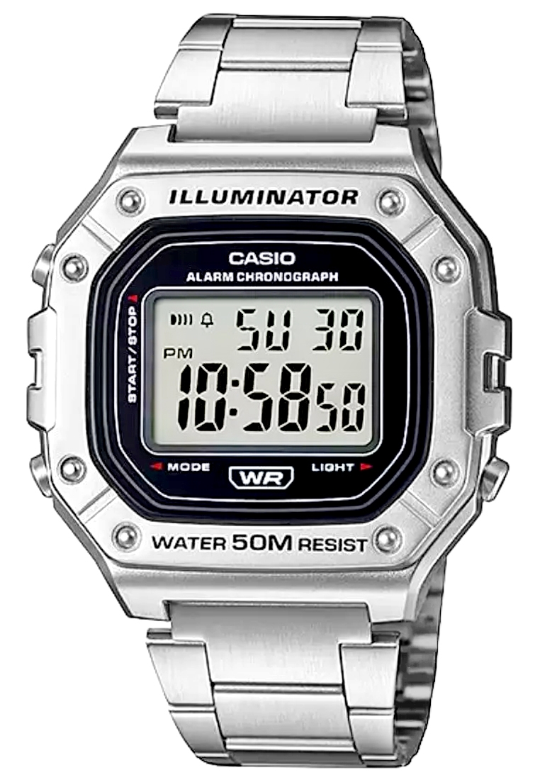 Casio W-218HD-1AVDF to esencja klasycznego stylu Casio w nowoczesnym, sportowym wydaniu: wyrazisty, prostokątny wyświetlacz LCD w solidnej kopercie, czytelny na pierwszy rzut oka, z subtelnymi akcentami, które dodają mu świeżości i uniwersalności. Zegarek został stworzony do codziennego tempa: wodoszczelność 50 m, podświetlenie LED dla pewnego odczytu po zmroku, 7-letnia bateria dla długiej niezawodności, a także praktyczny zestaw funkcji – stoper 1/100 s (do 60 min), alarm dzienny i sygnał pełnej godziny, automatyczny kalendarz oraz format 12/24 h. Lekki i wygodny, z szkiełkiem z tworzywa (Resin Glass) i wytrzymałą bransoletą, świetnie sprawdzi się zarówno na treningu, jak i w codziennych stylizacjach. Jeśli szukasz bezkompromisowej prostoty połączonej z legendarną trwałością Casio, będzie strzałem w dziesiątkę.