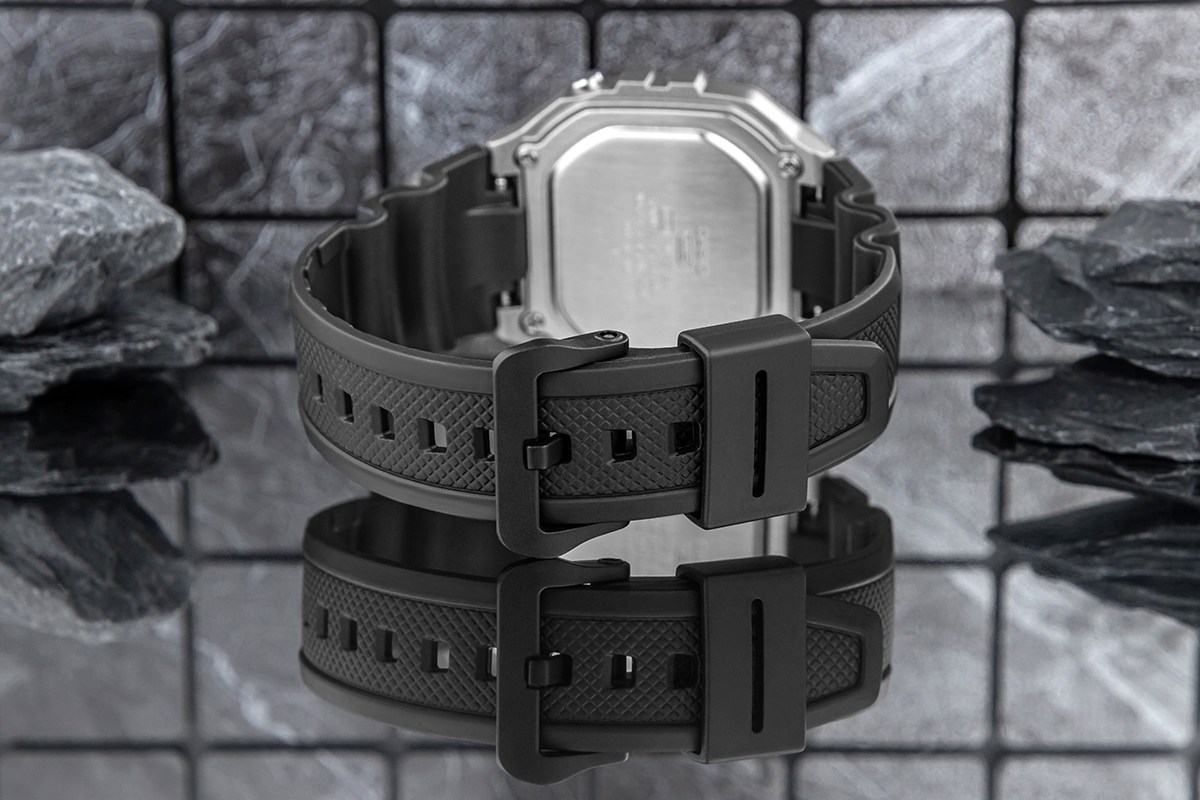 Pasek resinowy z tworzywa sztucznego jest bardzo lekki, zapewniając komfort w codziennym użytkowaniu, zwłaszcza w przypadku aktywności fizycznej. Materiał żywiczny – tworzywo jest odporny na uszkodzenia mechaniczne, takie jak pęknięcia czy złamania, co czyni go idealnym wyborem do zegarków przeznaczonych do intensywnego użytkowania. Tworzywo sztuczne jest odporny na wilgoć, działanie wody, a także na zmiany temperatury, co sprawia, że paski te doskonale sprawdzają się w trudnych warunkach. Paski resinowe są łatwe do czyszczenia – wystarczy przetrzeć je wilgotną ściereczką, aby usunąć zabrudzenia.