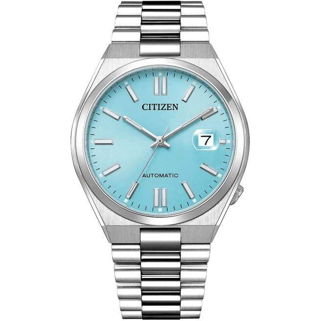 CITIZEN NJ0151-88M Tsuyosa NJ0151-88M to automatyczny Citizen z kopertą 40 mm, zintegrowaną stalową bransoletą i jasnoniebieską tarczą, która mocno wyróżnia ten model na tle bardziej klasycznych kolorów.