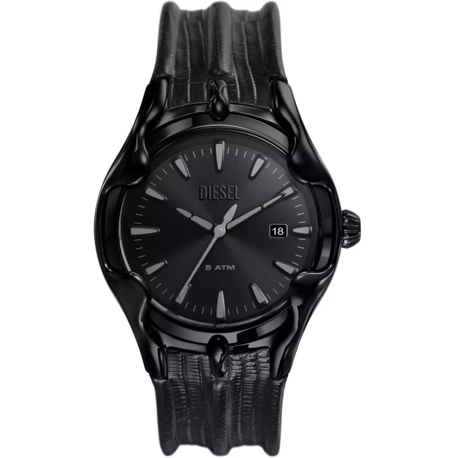 Diesel Vert DZ2193 daje ten sam nowoczesny rysunek koperty co modele Vert na bransolecie, ale przez skórzany pasek wypada trochę spokojniej na co dzień. Koperta 44 mm utrzymuje mocny, ale nadal codziennie używalny rozmiar.