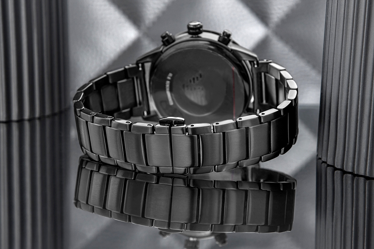 Mocna bransoleta wykonana z perfekcyjnie szczotkowanej stali nierdzewnej to element, który nie sposób przeoczyć. Każde ogniwo zostało zaprojektowane tak, by doskonale układać się na nadgarstku, zapewniając jednocześnie maksymalny komfort. Nieprzesadzona, doskonała w dotyku, wyrafinowana i solidna – jest jak stalowa obręcz, która mocno trzyma zegarek na Twoim nadgarstku, przypominając Ci o stabilności. Każde ogniwo jest starannie dopracowane, dzięki temu zegarek doskonale pasuje zarówno do codziennych, jak i formalnych stylizacji. Precyzyjnie wykonane zapięcie dopełnia ten mocny, męski charakter zegarka.