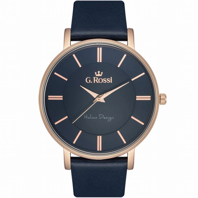G.Rossi 10401A-6F3 to męski model na skórzanym pasku z kopertą 42 mm i prostym, czytelnym układem tarczy. Całość idzie w stronę codziennej klasyki, bez sportowego przeciążenia.