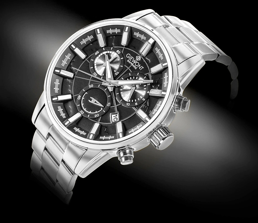 Zegarek męski Giewont GW4580-B2 to propozycja dla mężczyzn ceniących nowoczesny design, precyzyjną funkcjonalność i wyrazisty charakter. Jego wielowymiarowa tarcza z subtelnymi tłoczeniami oraz subtarcze przyciągają wzrok i nadaje modelowi głębi oraz wyjątkowej elegancji. Wyraźne metaliczne indeksy i masywne wskazówki zapewniają doskonałą czytelność, a chroniące całość szkiełko szafirowe gwarantuje imponującą odporność na zarysowania i nienaganny wygląd przez lata. Solidna stalowa bransoleta z wyrazistymi ogniwami prezentuje się prestiżowo i nowocześnie, a jej ergonomiczna konstrukcja idealnie dopasowuje się do nadgarstka, zapewniając komfort oraz pewność noszenia. Chronograf dodaje zegarkowi sportowej elegancji i funkcjonalności, czyniąc go idealnym zarówno do codziennego użytkowania, jak i bardziej wymagających aktywności. Obecność datownika zwiększa praktyczność modelu, podkreślając jego użytkowy, a jednocześnie luksusowy charakter. Ten model Giewont to wybór mężczyzny pewnego siebie, świadomego stylu i jakości – zegarek, który wyróżnia z daleka, a z bliska zachwyca precyzją wykonania, wyrazistością i ponadczasową elegancją.