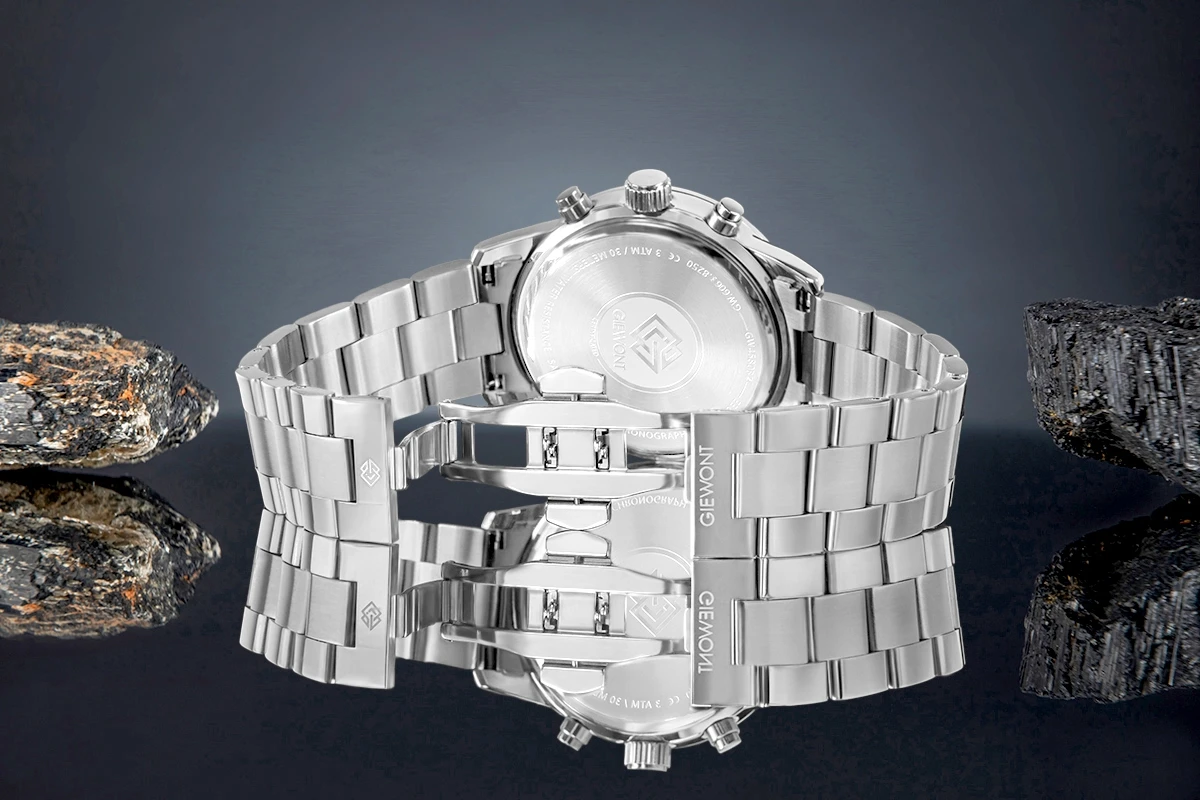 Mocna bransoleta wykonana z perfekcyjnie stali szlachetnej to element, który nie sposób przeoczyć. Każde ogniwo zostało zaprojektowane tak, by doskonale układać się na nadgarstku, zapewniając jednocześnie maksymalny komfort. Nieprzesadzona, doskonała w dotyku, wyrafinowana i solidna – jest jak stalowa obręcz, która mocno trzyma zegarek na Twoim nadgarstku, przypominając Ci o stabilności. Każde ogniwo jest starannie dopracowane, dzięki temu zegarek doskonale pasuje zarówno do codziennych, jak i formalnych stylizacji. Precyzyjnie wykonane zapięcie dopełnia ten mocny, męski charakter zegarka.