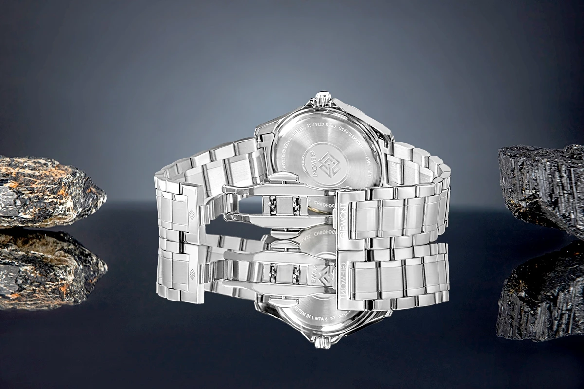 Zapięcie motylkowe sprawia, że bransoleta układa się na nadgarstku z wyjątkową elegancją, a cały mechanizm pozostaje niemal niewidoczny, tworząc efekt perfekcyjnej, spójnej całości. To detal, który jasno sygnalizuje, że masz do czynienia z zegarkiem zaprojektowanym z myślą o najwyższych standardach – dodatkiem, który wyróżnia się klasą, stylem i wyrafinowaniem na wyższym poziomie.