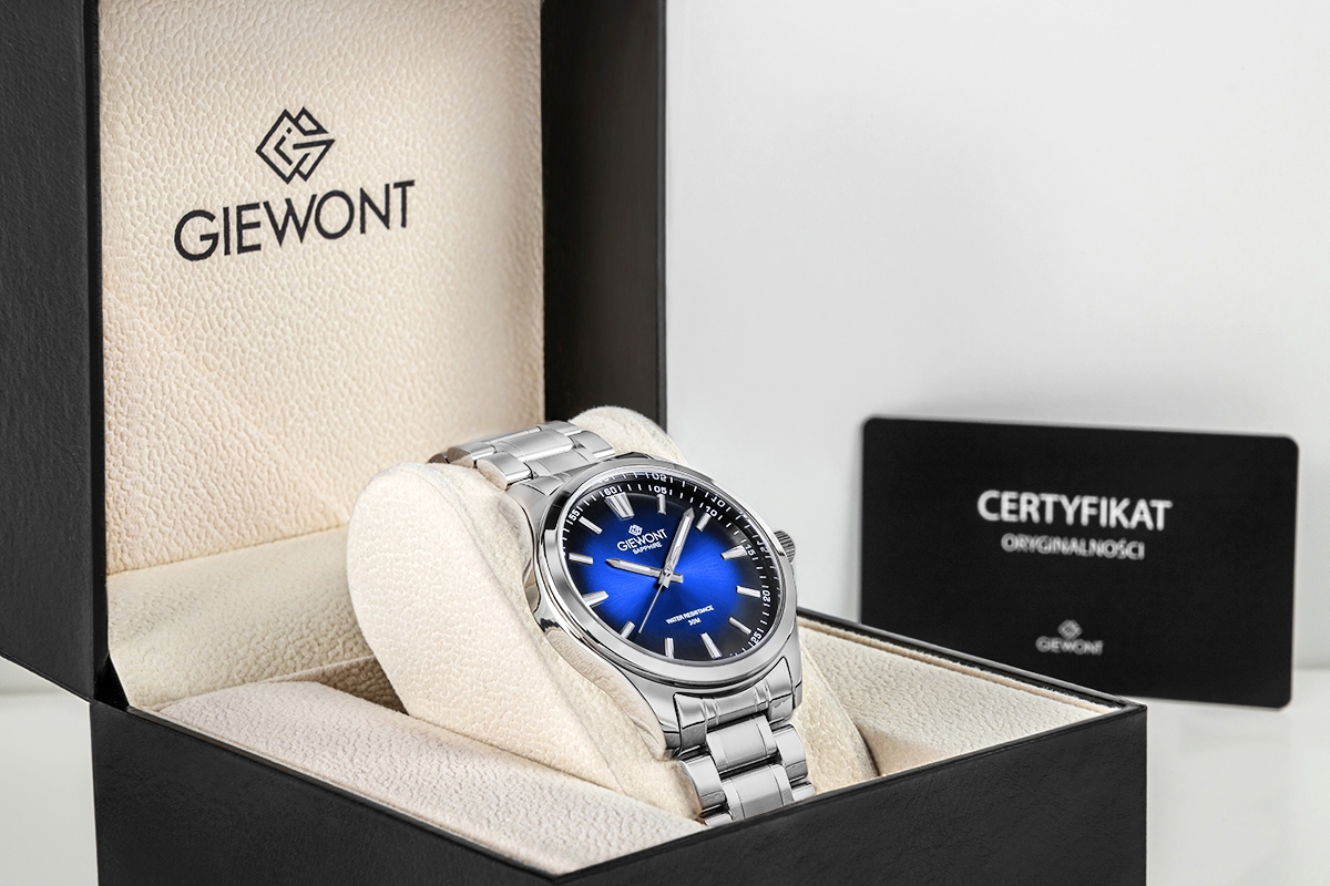 Model jest nowy i oryginalny, z oficjalnej polskiej dystrybucji Giewont. W zestawie otrzymujesz czarne eleganckie pudełko Giewont, firmową torebkę, instrukcję obsługi, kartę gwarancyjną oraz certyfikat oryginalności.