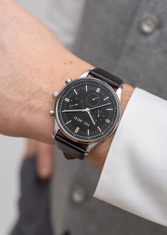 Styl, precyzja i funkcjonalność – zegarek Paul Lorens PL10602A2-1A1 to doskonałe połączenie klasyki i nowoczesnych funkcji. Srebrna koperta, czarna tarcza oraz czarny pasek ze skóry naturalnej podkreślają luksusowy i wyrafinowany styl. Dzięki chronografom z funkcjami czasu 24h oraz datownikiem dni tygodnia i miesiąca, zegarek spełnia oczekiwania nawet najbardziej wymagających użytkowników.