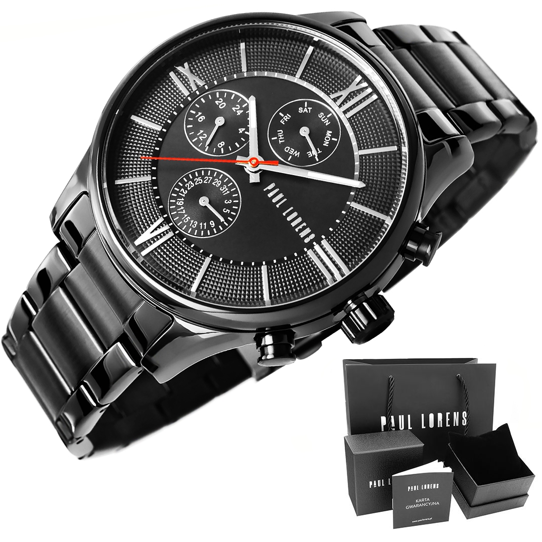 Paul Lorens PL11652B6-1A5 to stylowy męski zegarek z precyzyjnym mechanizmem kwarcowym Miyota Citizen Japan. Wyposażony w chronografy, fluorescencyjne wskazówki oraz elegancki czarno-srebrny design, jest idealnym wyborem dla osób ceniących klasykę i funkcjonalność.