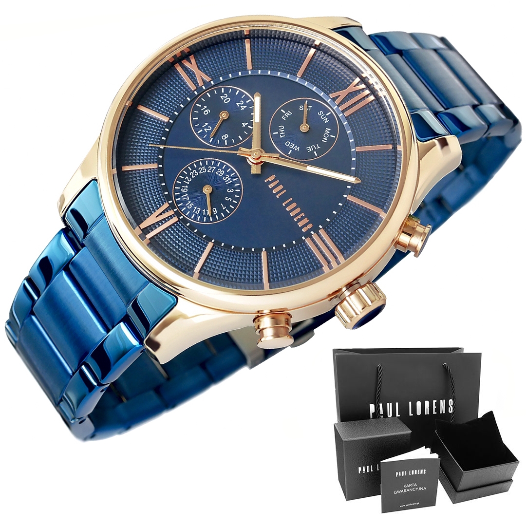 Paul Lorens PL11652B6-6F3 to elegancki czasomierz, który zachwyca swoim miedziano-niebieskim wykończeniem. Precyzyjny mechanizm kwarcowy, funkcjonalne chronografy oraz fluorescencyjne wskazówki sprawiają, że jest to idealny wybór dla wymagających mężczyzn ceniących styl i funkcjonalność.