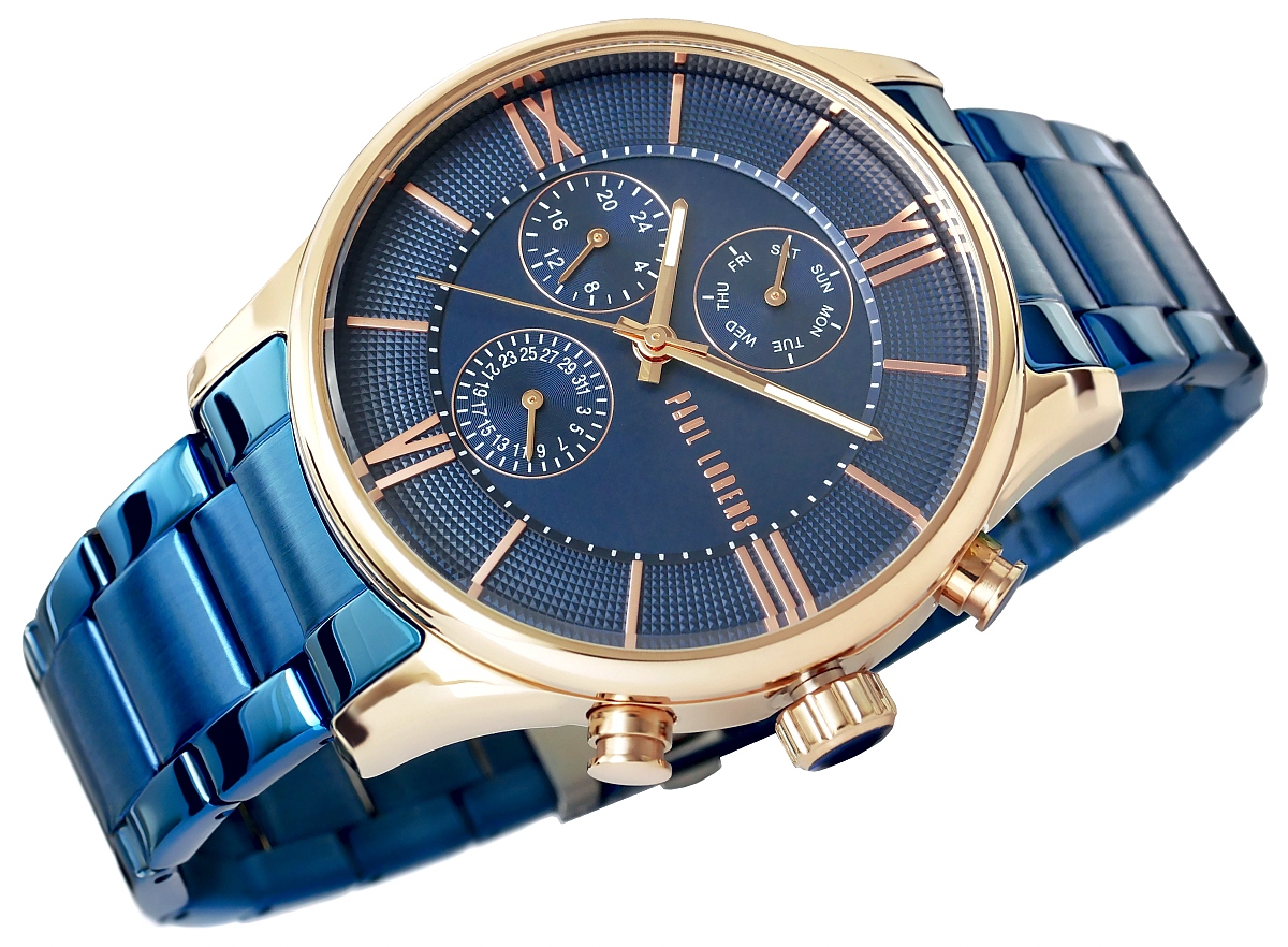 Model Paul Lorens PL11652B6-6F3 doskonale łączy klasyczny wygląd z nowoczesnymi funkcjami. Chronografy, fluorescencyjne wskazówki i miedziano-niebieskie wykończenie sprawiają, że zegarek pasuje zarówno do codziennych, jak i formalnych stylizacji.