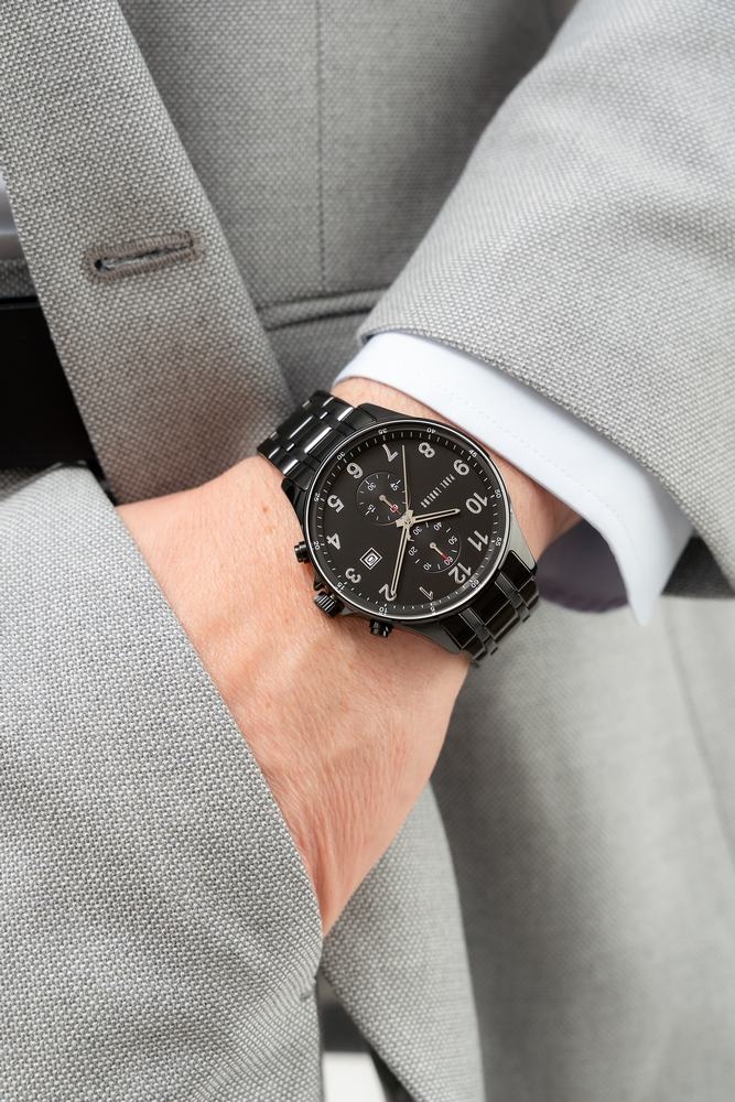 Wykonana z najwyższej jakości stali nierdzewnej to połączenie niezłomnej trwałości i luksusowego wykończenia, które robi wrażenie od pierwszego spojrzenia. Jej mocna, solidna konstrukcja zapewnia niezawodność i pewność, że zegarek będzie leżeć perfekcyjnie, bez względu na to, jak wymagający będzie Twój dzień. Precyzyjnie wykonane zapięcie, opatrzone wytłoczonym logo, dopełnia ten mocny, męski charakter, dodając odrobinę elegancji i prestiżu. Wielostopniowy mechanizm zapięcia zapobiega przypadkowemu odpięciu zegarka.