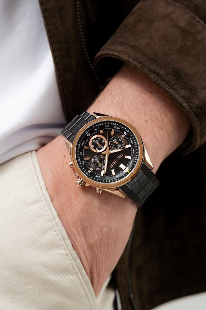 - Tarcza: Analogowa z chronografami i pierścieniem kompasowym