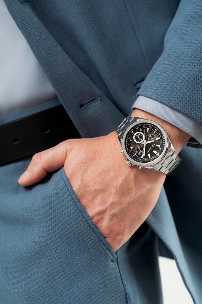 Wykonana z najwyższej jakości stali nierdzewnej to połączenie niezłomnej trwałości i luksusowego wykończenia, które robi wrażenie od pierwszego spojrzenia. Jej mocna, solidna konstrukcja zapewnia niezawodność i pewność, że zegarek będzie leżeć perfekcyjnie, bez względu na to, jak wymagający będzie Twój dzień. Precyzyjnie wykonane zapięcie, opatrzone wytłoczonym logo, dopełnia ten mocny, męski charakter, dodając odrobinę elegancji i prestiżu. Wielostopniowy mechanizm zapięcia zapobiega przypadkowemu odpięciu zegarka.