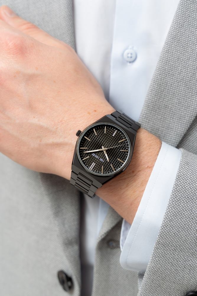 Wykonana z najwyższej jakości stali nierdzewnej to połączenie niezłomnej trwałości i luksusowego wykończenia, które robi wrażenie od pierwszego spojrzenia. Jej mocna, solidna konstrukcja zapewnia niezawodność i pewność, że zegarek będzie leżeć perfekcyjnie, bez względu na to, jak wymagający będzie Twój dzień. Precyzyjnie wykonane zapięcie, opatrzone wytłoczonym logo, dopełnia ten mocny, męski charakter, dodając odrobinę elegancji i prestiżu. Wielostopniowy mechanizm zapięcia zapobiega przypadkowemu odpięciu zegarka.