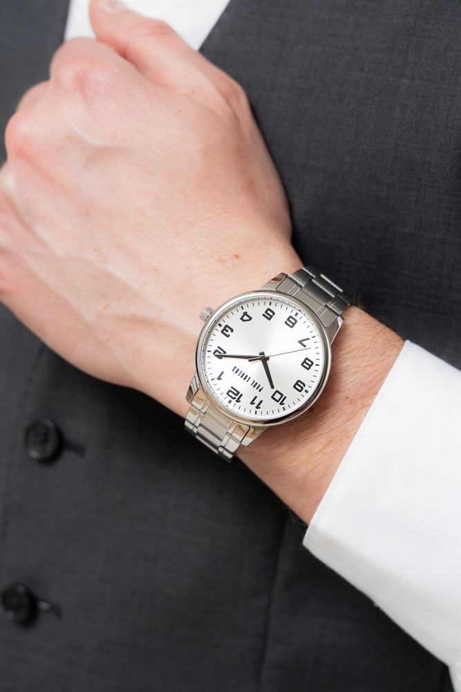 - Mechanizm: Precyzyjny kwarcowy z trzema wskazówkami: godzinową, minutową i sekundową / zasilany baterią