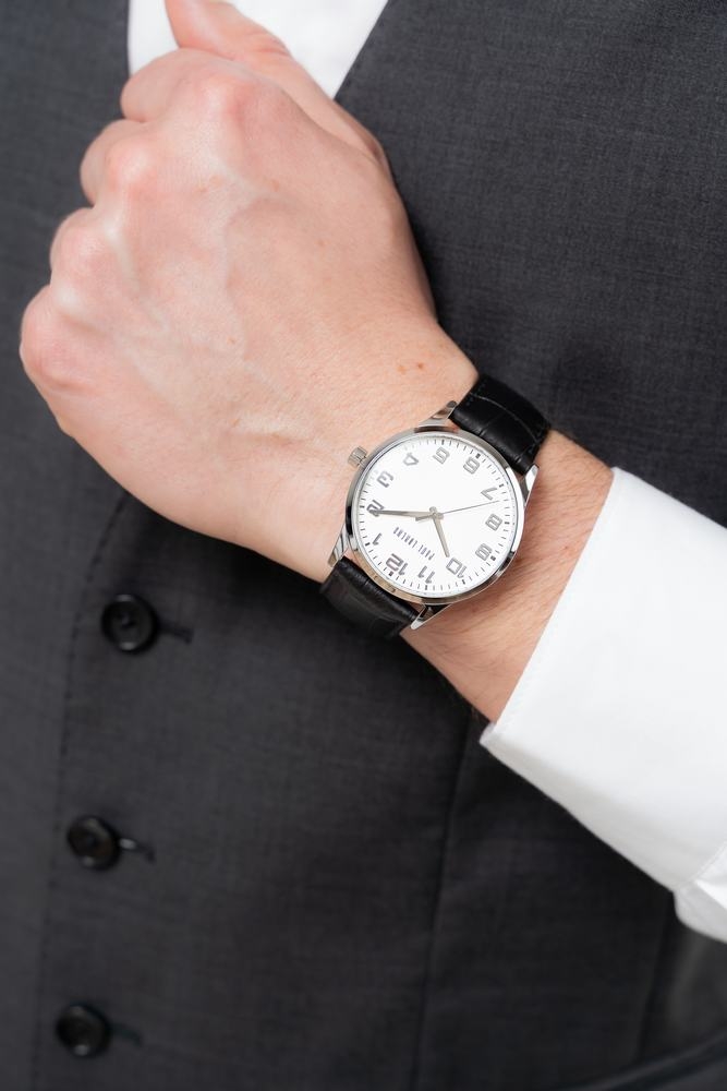 Najważniejsze cechy: skórzany pasek, zapięcie na sprzączkę, mineralne szkło, datownik, koperta 41 mm i podstawowa odporność na zachlapania.
