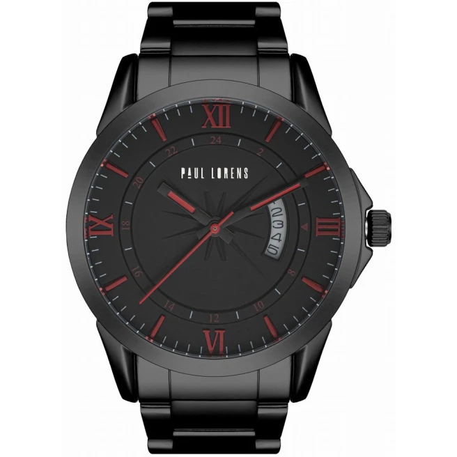 Paul Lorens PL3844B3-1A5-2 to męski model na stalowej bransolecie z kopertą 46 mm i prostszym układem tarczy niż w rodzinach wielofunkcyjnych. Datownik zostaje tu najważniejszym praktycznym dodatkiem, a reszta projektu trzyma bardziej klasyczny, codzienny kierunek.