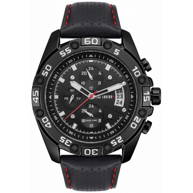 Paul Lorens PL8754A5-1A3 to duży męski model na skórzanym pasku, z kopertą 46 mm i rozbudowaną tarczą o bardziej wyrazistym charakterze niż w prostych zegarkach codziennych. To model dla osób, które wolą mocniejszy, bardziej zauważalny zegarek na ręce.