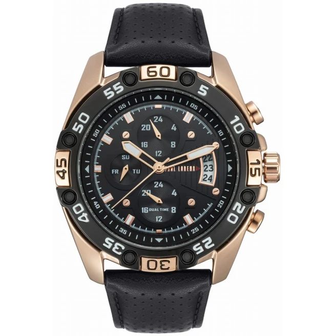 Paul Lorens PL8754A5-1A4 to duży męski model na skórzanym pasku, z kopertą 46 mm i rozbudowaną tarczą o bardziej wyrazistym charakterze niż w prostych zegarkach codziennych. To model dla osób, które wolą mocniejszy, bardziej zauważalny zegarek na ręce.
