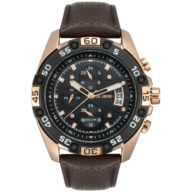 Paul Lorens PL8754A5-1B1 to duży męski model na skórzanym pasku, z kopertą 46 mm i rozbudowaną tarczą o bardziej wyrazistym charakterze niż w prostych zegarkach codziennych. To model dla osób, które wolą mocniejszy, bardziej zauważalny zegarek na ręce.