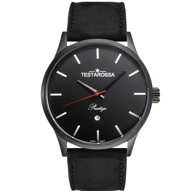 Zegarek męski z datownikiem Testarossa na czarnym skórzanym pasku.