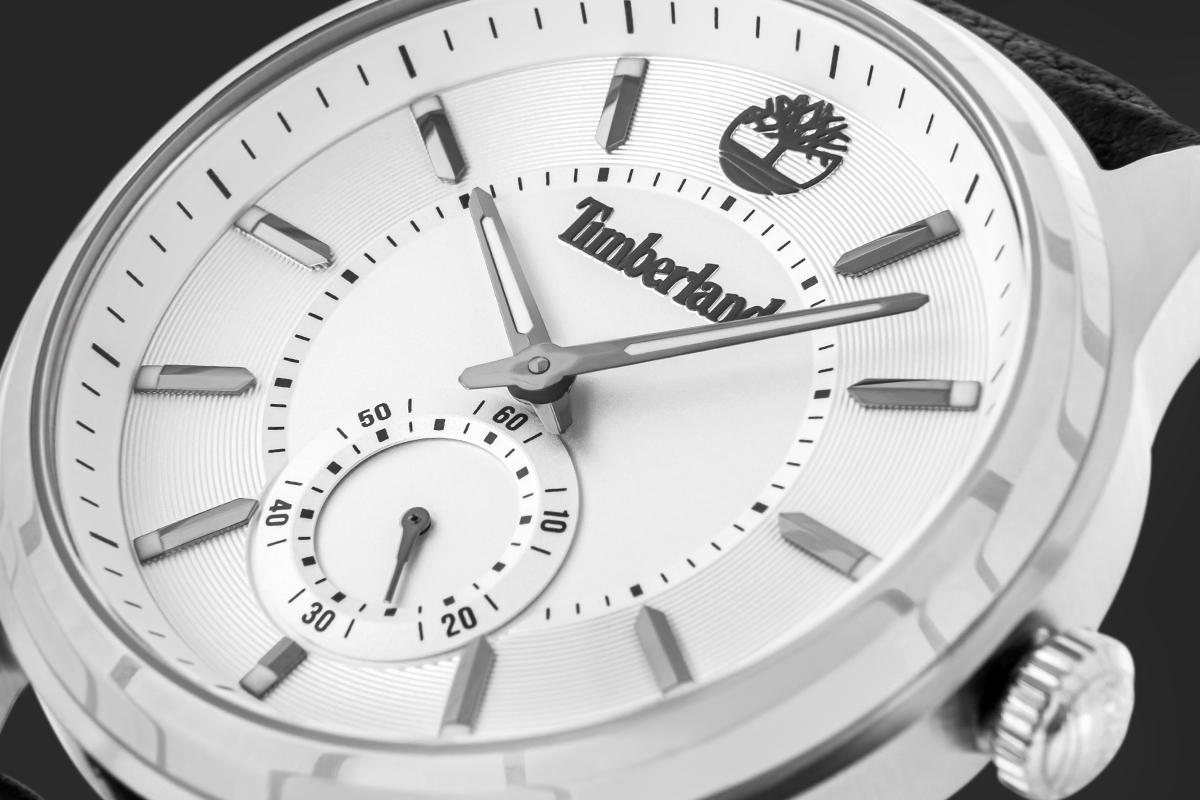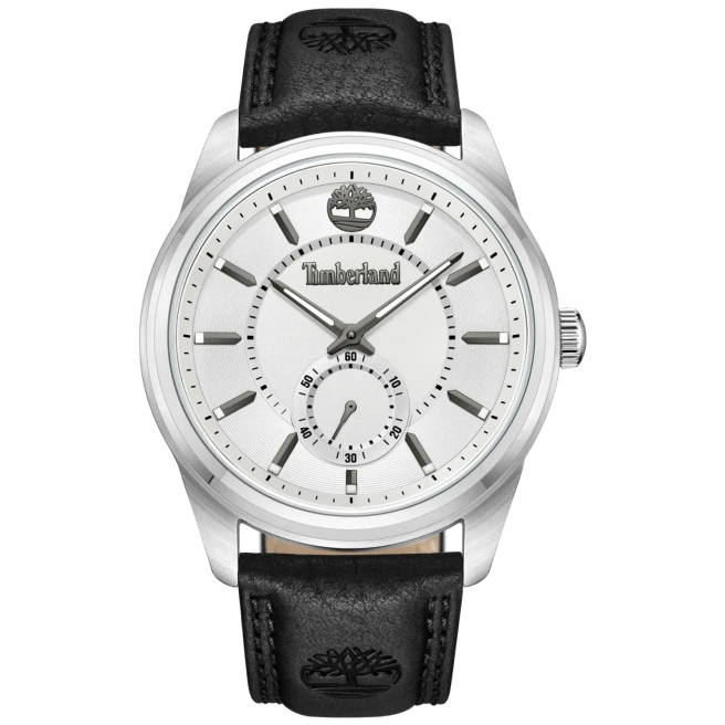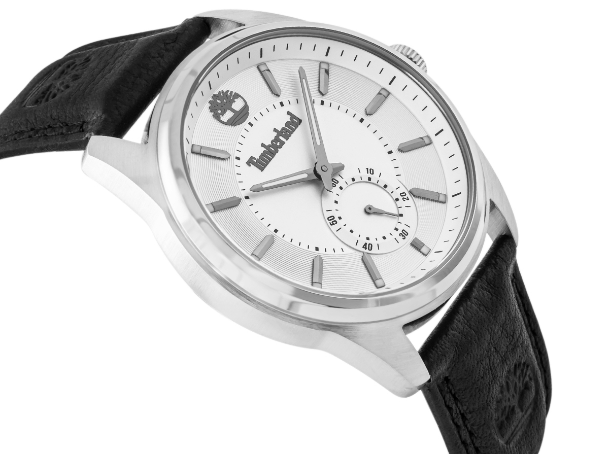 Timberland TDWGA0029704 Timberland TDWGA0029704 Northbridge to większy model na skórzanym pasku, z jasną tarczą i małą sekundą. Koperta 45 mm daje wyraźny rozmiar, ale układ bez dodatkowych subtarczy pozostaje czytelny i uporządkowany.