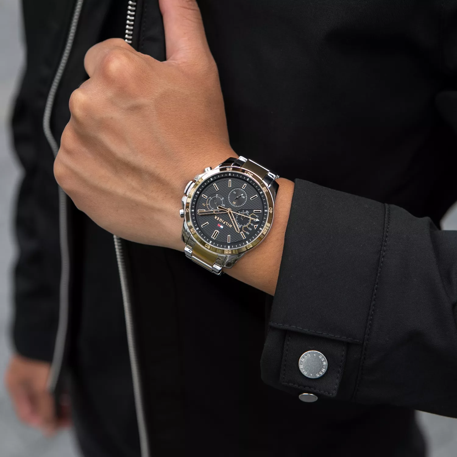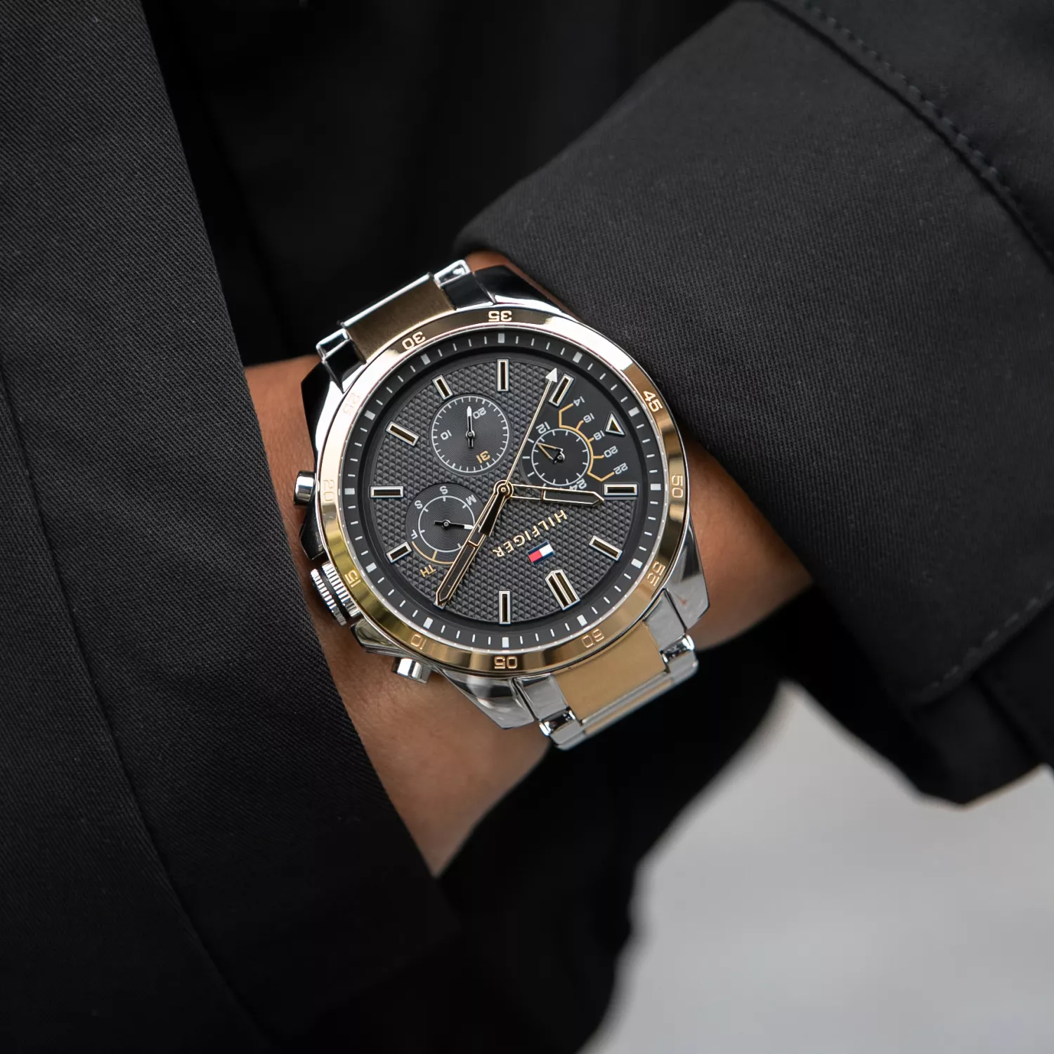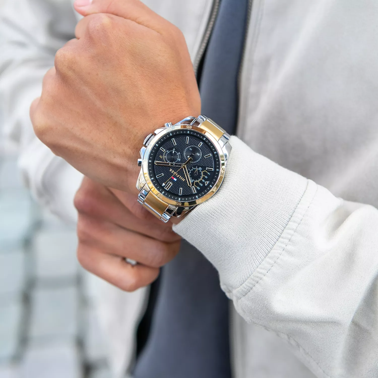 Tommy Hilfiger Decker 1791559 to wyjątkowy czasomierz stworzony z myślą o mężczyznach, którzy cenią elegancję i wysoką jakość. Doskonale współgra z męskim strojem, zwłaszcza garniturem, dodając mu szyku i klasy. Zegarek został starannie wykonany z najlepszej jakości stali szlachetnej, która nie tylko dodaje mu trwałości, ale także zapewnia alergikom bezpieczne użytkowanie bez obaw o uczulenia. Całość prezentuje się w kolorze srebrno-złotym, nadając zegarkowi prestiżowego wyglądu. Czarna tarcza z subtarczami datownika i czasu 24h dodaje mu charakteru i sprawia, że jest zarówno estetyczny, jak i funkcjonalny. Dodatkowo, szkiełko mineralne, które pokrywa tarczę, chroni ją przed zarysowaniami i przypadkowymi uderzeniami, zachowując świetny wygląd na dłużej. Wnętrze zegarka kryje niezawodny mechanizm kwarcowy zasilany baterią, który zapewnia precyzyjne działanie i dokładność wskazań. Dzięki temu nigdy nie będziesz musiał martwić się o spóźnienie na ważne spotkania czy wydarzenia. Tommy Hilfiger Decker 1791559 został także wyposażony w technologię PLATING, która zapewnia jednolitą, gładką powierzchnię zegarka, odporną na ścieranie. To innowacyjne rozwiązanie gwarantuje długotrwałą estetykę czasomierza, sprawiając, że będzie Ci towarzyszył w wielu wyjątkowych chwilach. Wodoszczelność na poziomie 5 BAR pozwala zegarkowi przetrwać większe zachlapania, jakie mogą wystąpić podczas codziennych czynności, takich jak mycie samochodu czy korzystanie z prysznica. Dzięki temu zegarek jest nie tylko stylowym dodatkiem, ale także praktycznym i wytrzymałym towarzyszem. Tommy Hilfiger Decker 1791559 to zegarek dla mężczyzn, którzy cenią sobie elegancję, jakość i funkcjonalność. Jego precyzyjny mechanizm, trwałe materiały, antyalergiczność i wodoszczelność sprawiają, że jest to doskonały wybór na różnego rodzaju okazje, podkreślając Twój wyjątkowy styl i charakter.