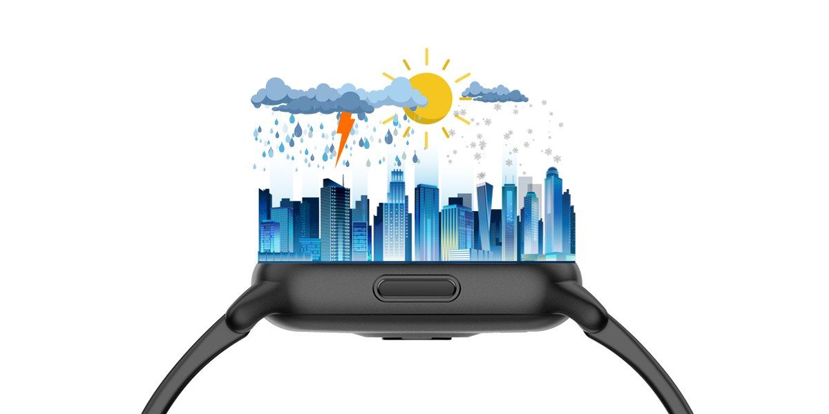 Po podłączeniu z aplikacją na zegarku będą wyświetlane dane o pogodzie – informacje, są odświeżane co godzinę